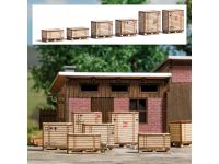 6 Pallets and 6 crates made of genuine wood. Crates in various sizes and with different imprints. Kit.