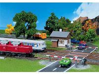 avec maisonnette de garde-barrière. Peut s’installer sur des tronçons à une ou plusieurs voies. Sans entraînement.